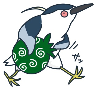 ゴイサギさんスタンプシリーズ第三弾・ペンギンプールの豆アジ泥棒といえば、ぬすっと(盗っ鳥)!?ゴイサギさん。コウテイペンギンのコッペを添えて。 2018.03.13 発売